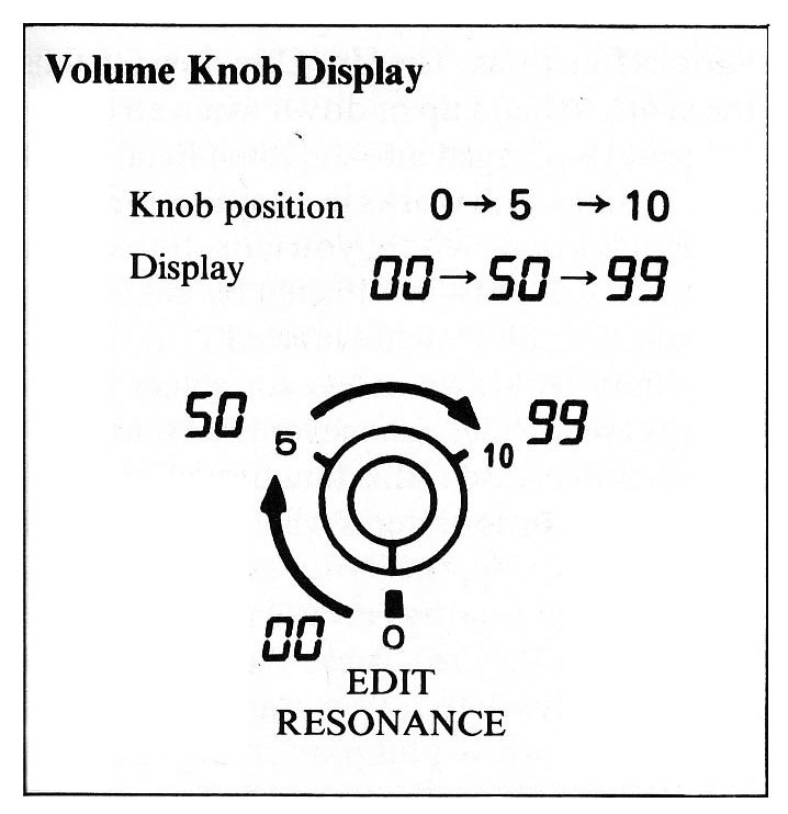 Another important Edit switch is labeled Trig Level. Depress this switch, and use the Edit knob on the bass to set the overall sensitivity of the synthesizer to your playing style. Turning the Edit knob selects a setting between 00 and 99 (00 is the least sensitive).