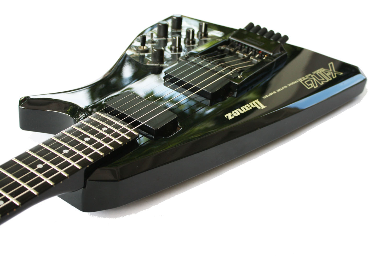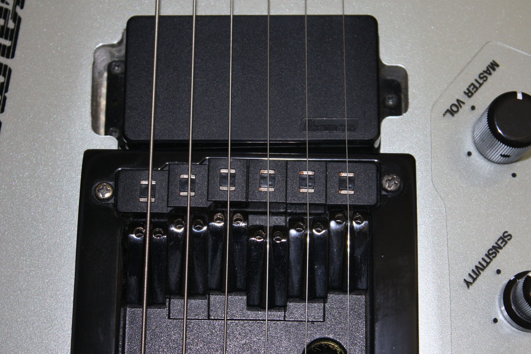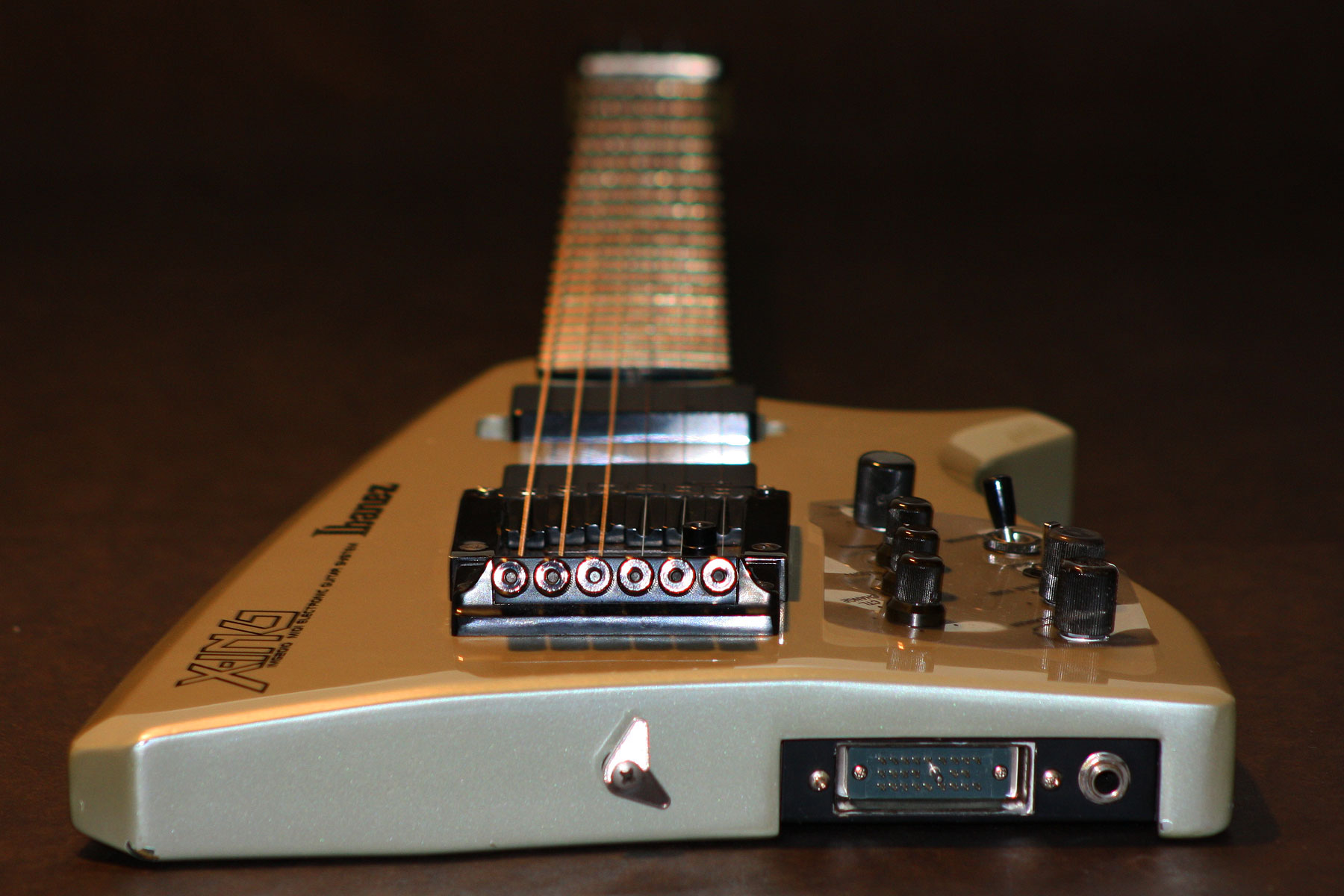 - Bridge: Custom Ibanez with integrated hex pickup