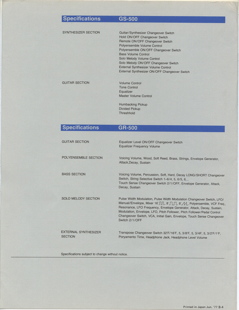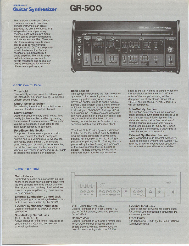 - Roland GR-500 Mods - Part 1 Thanks to the Phantastic Jimi Photon who pointed me to the March April 1981 Polyphony magazine with the first list of Roland GR-500 modifications.
