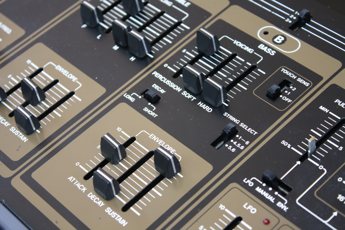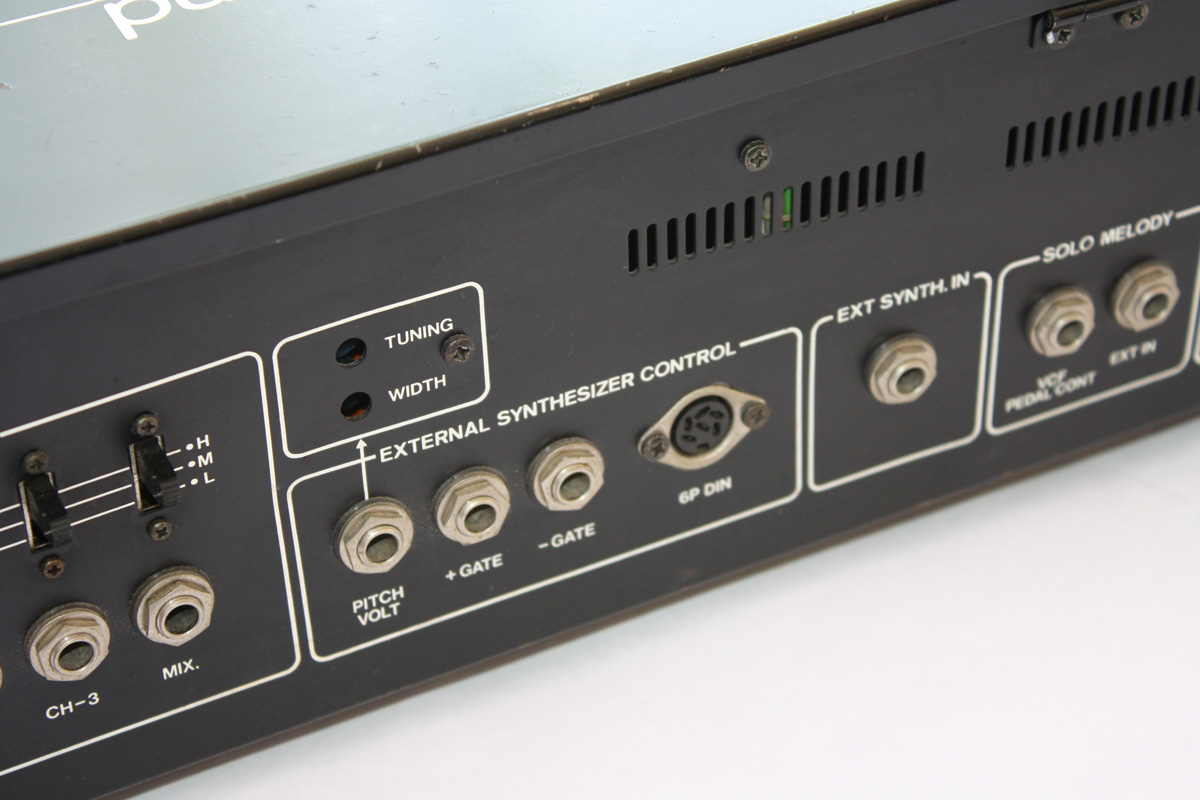 - Solo Melody Section: Pulse width modulation (LFO/Manual/Env), mixer (square 16' 8', saw 8', polyensemble) VCF frequency, resonance, LFO frequency, Envelope generator: attack, decay, and sustain. Modulation: envelope, LFO, pitch follower, pitch follower or pedal control. VCA: initial gain, envelope, touch sense (2/1/off)