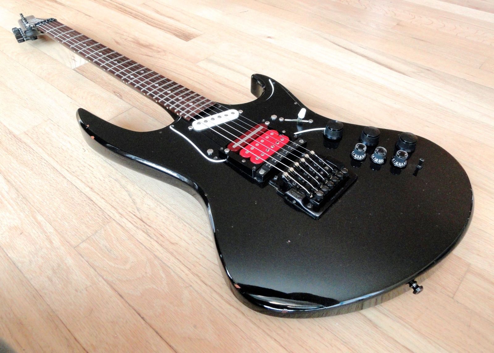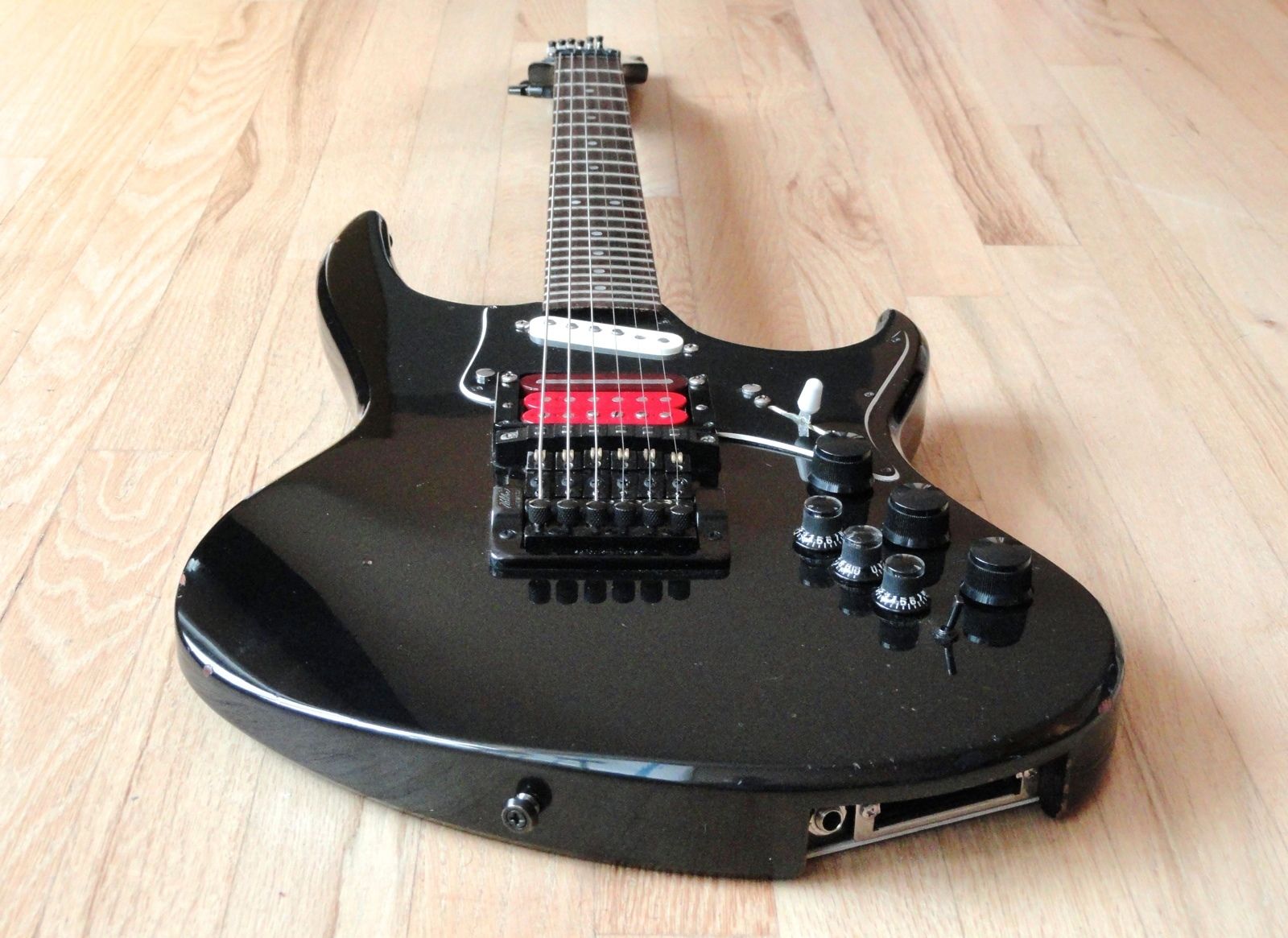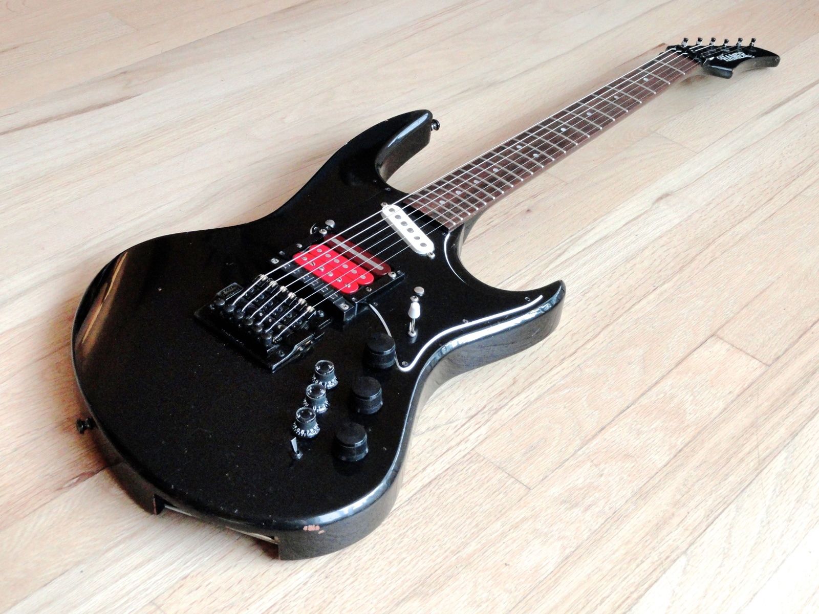 - Pickups: Hamer Slammers (one humbucker combined with a single-coil, plus one single-coil)