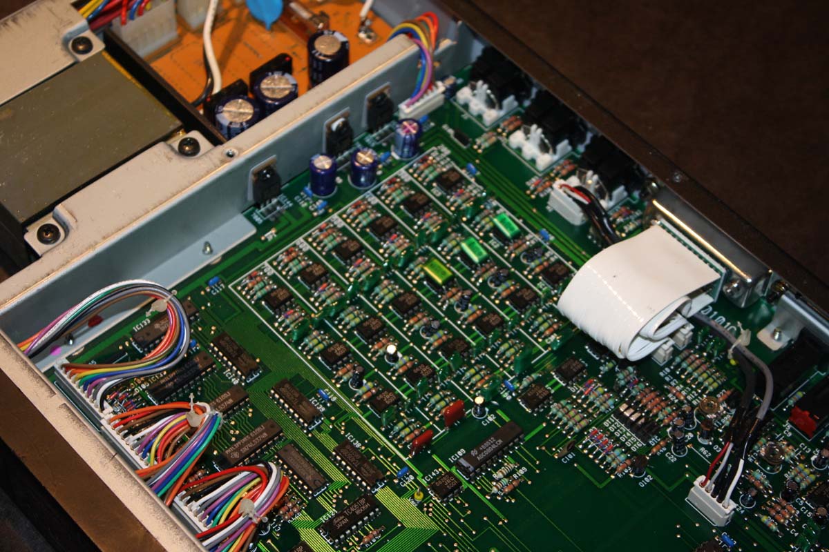 The SBC-1324 is the unit I built to meet this need. The unit has both 13 and 24 pin inputs, and a master analog switch to select between the two. There are six amplifiers for each string input, used primarily to boost the 13 pin signals to the 24 pin format, but they can also be used individually to amplify any single string input, whether 13 or 24 pin.