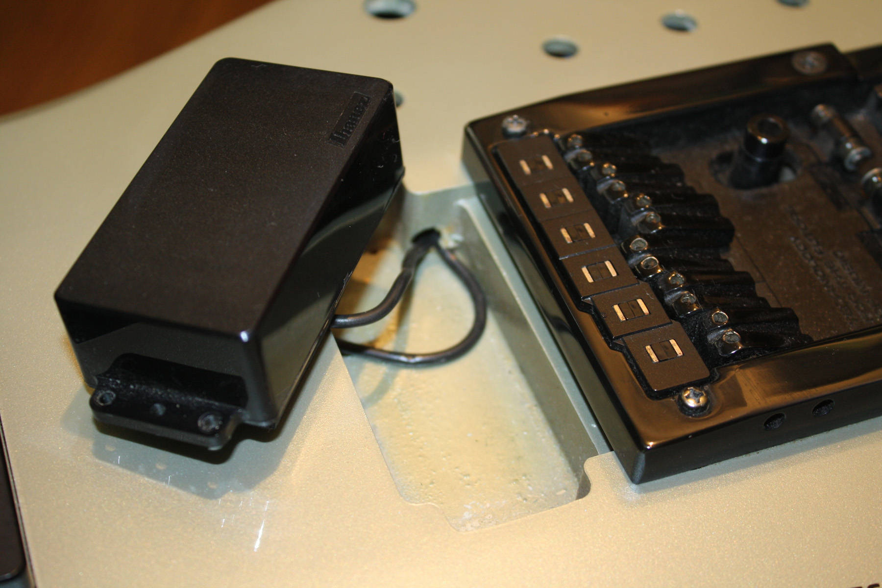 - Bridge: Custom Ibanez with integrated hex pickup
