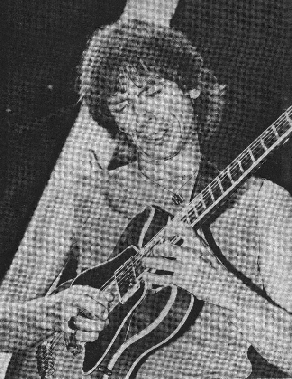 Howe continues to control his new GR-700 module with the G-505 he acquired for his GR-300. "I'm basically a conservative and the new guitar (G-707) with the tie-bar doesn't fit with the way I look at guitars. I like 'huggable' curvey shapes." He is, however, taking advantage of another Roland service. One of the prized ES Artist guitars, already full of active electronics, is currently in the process of having its circuitry rearranged for the additional electronics of the Roland GR controller (LPK-1). Modifying a favorite axe in this way is testimony to how seriously Howe takes the new concept.